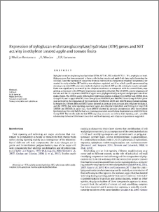 | Título: | Expression of xyloglucan endotransglucosylase/hydrolase (XTH) genes and XET activity in ethylene treated apple and tomato fruits. |