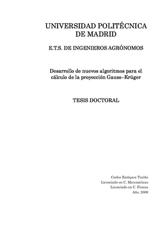 | Título: | Desarrollo de nuevos algoritmos para el cálculo de la proyección Gauss-Krüger |