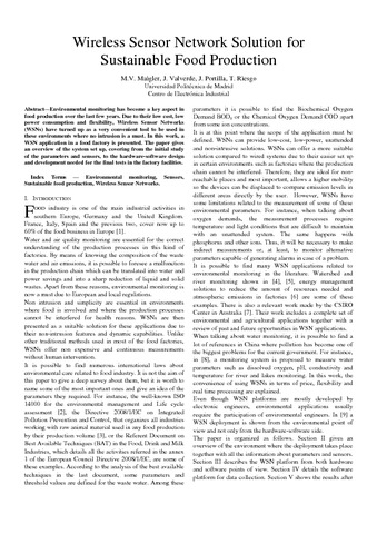 | Título: | Wireless Sensor Network Solution for Sustainable Food Production |
