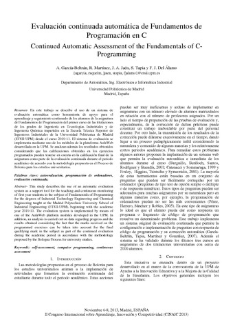 | Título: | Evaluación continuada automática de Fundamentos de Programación en C |