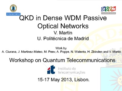 En: "Workshop on Quantum Telecommunications", 15-17 May 2013, Lisboa, Portugal.