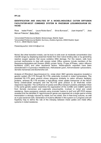 | Título: | Identification and analysis of a nickel-inducible cation diffusion facilitator-NiCoT combined system in Rhizobium leguminosarum bv. viciae |