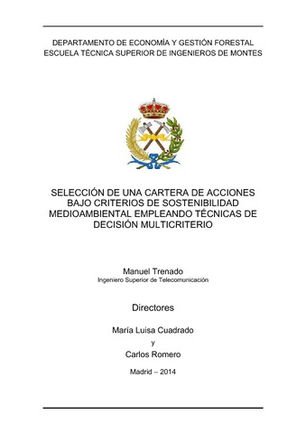| Título: | Selección de una cartera de acciones bajo criterios de sostenibilidad medioambiental empleando técnicas de decisión multicriterio |