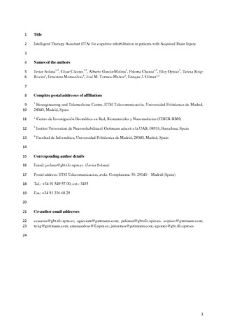 | Título: | Intelligent Therapy Assistant (ITA) for cognitive rehabilitation in patients with Acquired Brain Injury |