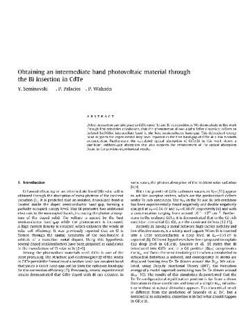 | Título: | Obtaining an intermediate band photovoltaic material through the Bi insertion in CdTe |