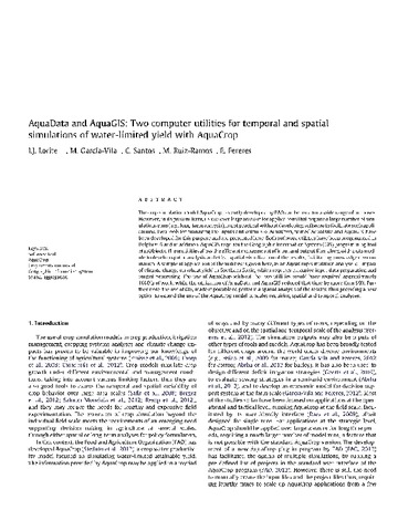 | Título: | AquaData and AquaGIS: Two computer utilities for temporal and spatial simulations of water-limited yield with AquaCrop. |