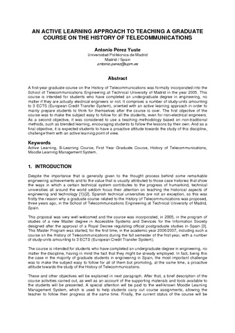 | Palabras Clave Informales: | Active learning, B-Learning Course, first year graduate course, history of telecommunications, moodle learning management system |
