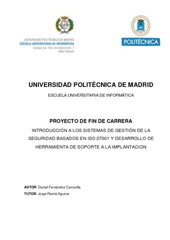 PDF (Portable Document Format) (Introducción a los sistemas de gestión de la Seguridad de la Información (o SGSI) y el posterior proceso de desarrollo de una herramienta práctica y útil que presente las características necesarias para la gestión eficiente, sencilla y unificada de las pr)