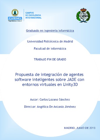 | Título: | Propuesta de integración de agentes software inteligentes sobre JADE con entornos virtuales en Unity3D |