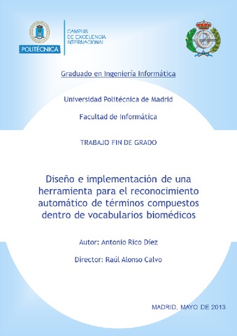 | Título: | Diseño e implementación de una herramienta para el reconocimiento automático de términos compuestos dentro de vocabularios biomédicos |