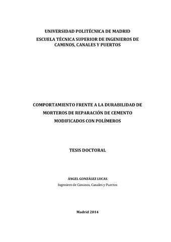 | Título: | Comportamiento frente a la durabilidad de morteros de reparación de cemento modificados con polímeros |