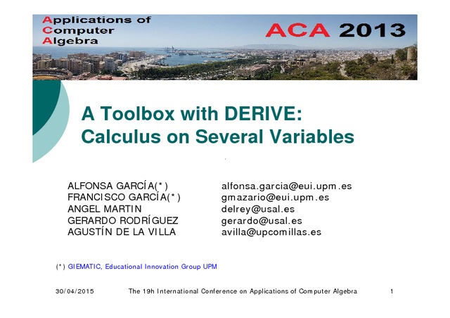 | Título del Libro: | Proceedings of Applications of Computer Algebra ACA 2013. Málaga |