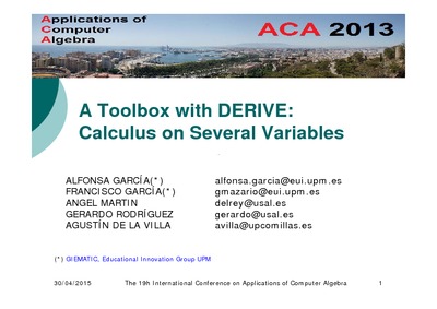 | Título: | A toolbox with DERIVE: calculus on several variables, Applications of Computer Algebra |
