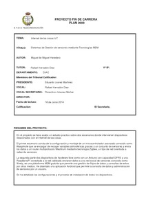 web or through a mobile application on this case by means of functions offered by Xively. I have designed an Android application that allows data consultation and management of sensors by a user, the user tries to abstract the technical complexity and bring the connected objects, in this case sensors.