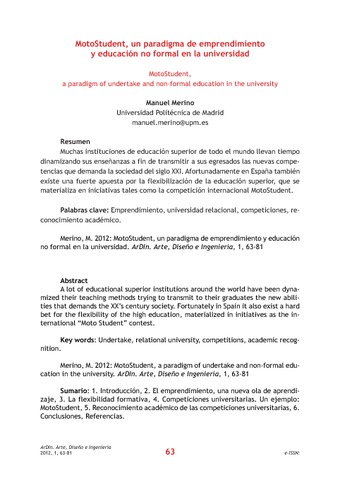 | Título: | MotoStudent, un paradigma de emprendimiento y educación no formal en la universidad |