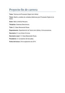 Este Proyecto Fin de Carrera pretende desarrollar una serie de unidades didácticas orientadas a mejorar el aprendizaje de la teoría de procesado digital de señales a través de la aplicación práctica. Con tal fin, se han diseñado una serie de prácticas que permitan al alumno alcanzar un apropiado nivel de conocimiento de la asignatura, la adquisición de competencias y alcanzar los resultados de aprendizaje previstos.