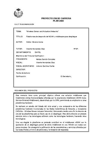 | Título: | Plataformas de desarrollo de WSAN y MiddleWare para despliegue |