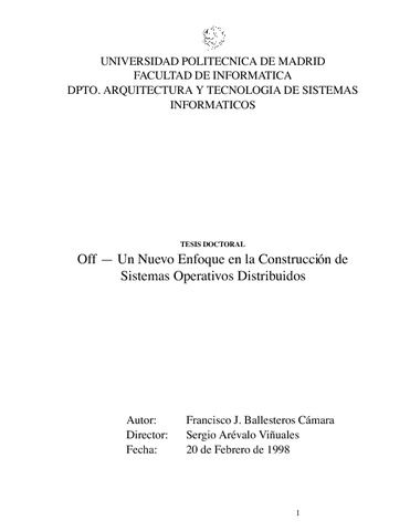 | Título: | Off, un nuevo enfoque en la construcción de Sistemas Operativos Distribuidos |