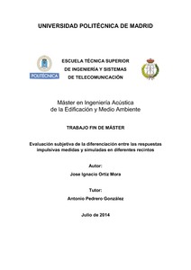 El proyecto consiste en realizar una evaluación subjetiva de la diferenciación entre las respuestas impulsivas medidas y simuladas en diferentes recintos, comparándola con los parámetros acústicos objetivos que se han obtenido mediante una evaluación objetiva anterior.