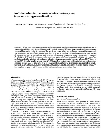 | Título: | Nutritive value for ruminants of winter oats-legume intercrops in organic cultivation |