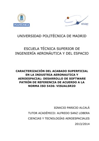 Caracterización del Acabado Superficial en la Industria Aeronautica y Aeroespacial - Desarrollo de Software Patrón de Referencia de Acuerdo a la Norma ISO 5436: VisualSR2D.