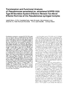 | Título: | Translocation and Functional Analysis of Pseudomonas savastanoi pv. savastanoi NCPPB 3335 Type III Secretion System Effectors Reveals Two Novel Effector Families of the Pseudomonas syringae Complex |