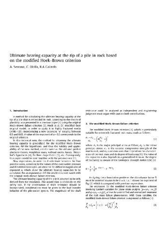 | Título: | Ultimate bearing capacity at the tip of a pile in rock based on the modifed Hoek-Brown criterion |