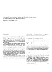 Ultimate bearing capacity at the tip of a pile in rock based on the modifed Hoek-Brown criterion.