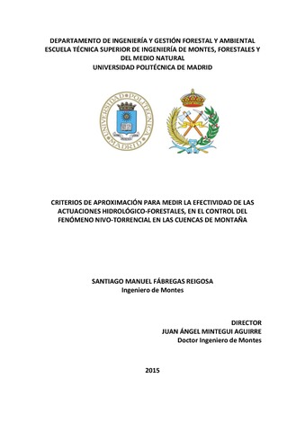| Título: | Criterios de aproximación para medir la efectividad de las actuaciones hidrológico-forestales, en el control del fenómeno nivo-torrencial en las cuencas de montaña |