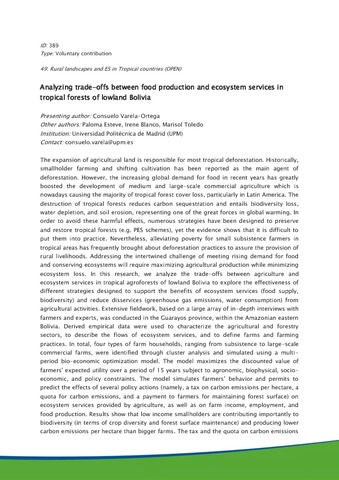 Analysing trade-offs between food production and ecosystem services in tropical forests of lowland Bolivia.