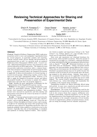| Título: | Reviewing technical approaches for sharing and preservation of experimental data |