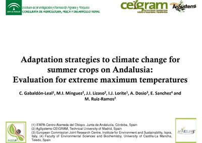 | Título: | Adaptation Strategies to Climate Change for summer crops on Andalusia: evaluation for extreme maximum temperatures |
