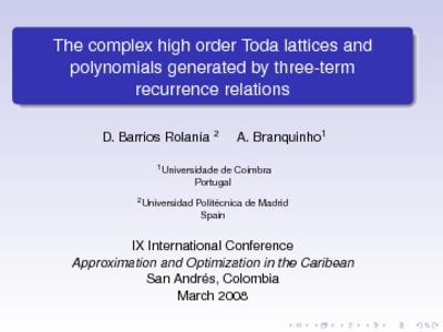 | Título: | The complex high order Toda lattice and polynomials generated by three term recurrence relations |