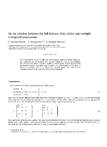 | Título: | On the relation between the full Kostant-Toda lattice and multiple orthogonal polynomials |