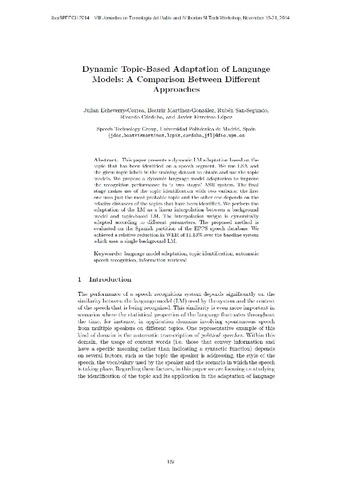 | Título: | Dynamic topic-based adaptation of language models: a comparison between different approaches |