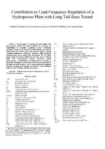 | Título: | Contribution to Load-Frequency Regulation of a Hydropower Plant with Long Tail-Race Tunnel |