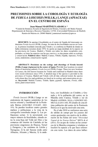 | Título: | Precisiones sobre la corología y ecología de Ferula loscosii (Willk.) Lange (Apiaceae) en el centro de España. |