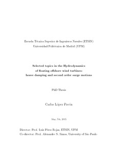| Título: | Selected topics in the Hydrodynamics of floating offshore wind turbines: heave damping and second order surge motions |