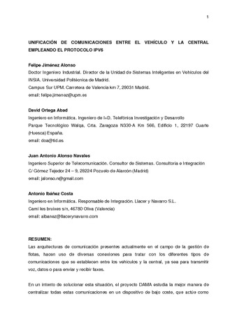 | Título: | Unificación de comunicaciones entre el vehículo y la central empleando el protocolo IPv6 |