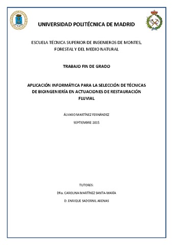 | Título: | Aplicación informática para la selección de técnicas de bioingeniería en actuaciones de restauración fluvial |