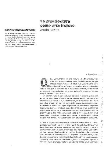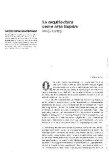 Es la arquitectura un arte impuro, un arte mestizo. Y no sólo porque sea un arte aplicado. También porque, en gran medida debido a ello, en ella habita la contradicción, como es bien sabido, así como la paradoja y la complicación, tanto o más que la complejidad. Y es un arte, también, de expresión indirecta, de representación, por lo que a menudo se convierte en un arte disfrazado, enmascarado.