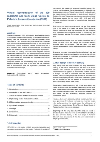 | Título: | Virtual reconstruction of the 400 toneladas nao from Diego García de Palacio’s Instrucción náutica (1587) |