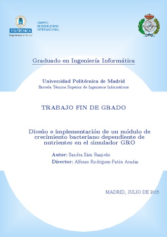 | Título: | Diseño e implementación de un módulo de crecimiento bacteriano dependiente de nutrientes en el simulador GRO |