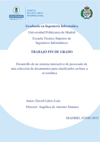 | Título: | Desarrollo de un sistema interactivo de procesado de una colección de documentos para clasificarlos en base a su temática |