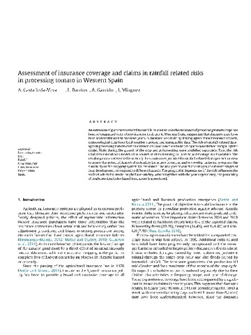 | Título: | Assessment of insurance coverage and claims in rainfall related risksin processing tomato in Western Spain |
