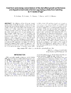 | Título: | Feed form and energy concentration of the diet affect growth performance and digestive tract traits of brown-egg laying pullets from hatching to 17 weeks of age |