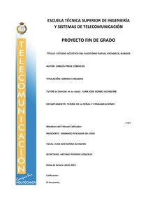 El presente proyecto desarrolla un estudio acústico del recinto: Auditorio Rafael Frühbeck de Burgos, cumpliendo con las indicaciones exigidas por la norma UNE-EN ISO 3382-1: 2010, “Medición de parámetros acústicos en recintos, Parte 1: Salas de Espectáculos”.