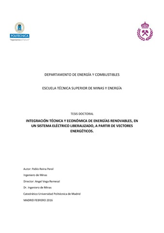 | Título: | Integración técnica y económica de energías renovables, en un sistema eléctrico liberalizado, a partir de vectores energéticos |