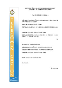 Este proyecto tiene como objetivo el desarrollo de un sistema de cancelación activa de ruidos de carácter periódico, empleando para ello electrónica de consumo y un kit de desarrollo DSP basado en un procesador de muy bajo coste. Se han desarrollado una serie de módulos de código para el DSP escritos en lenguaje C, que realizan el procesado de señal adecuado a la referencia de ruido. Esta señal procesada, una vez emitida, produce la cancelación acústica.