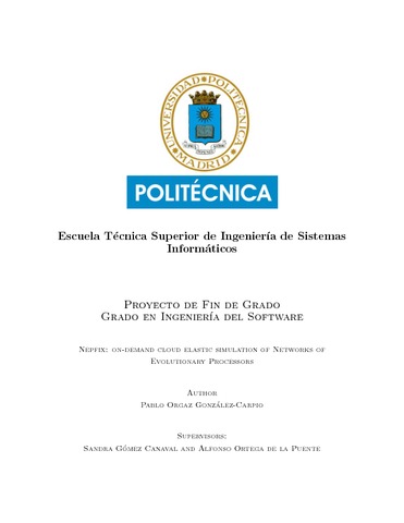 Una Red de Procesadores Evolutivos o NEP (por sus siglas en ingles), es un modelo computacional inspirado por el modelo evolutivo de las celulas, específicamente por las reglas de multiplicación de las mismas. Esta inspiración hace que el modelo sea una abstracción sintactica de la manipulation de information de las celulas. En particu¬lar, una NEP define una maquina de cómputo teorica capaz de resolver problemas NP completos de manera eficiente en tóerminos de tiempo. En la praóctica, se espera que las NEP simuladas en móaquinas computacionales convencionales puedan resolver prob¬lemas reales complejos (que requieran ser altamente escalables) a cambio de una alta complejidad espacial. En el modelo NEP, las cóelulas estóan representadas por palabras que codifican sus secuencias de ADN. Informalmente, en cualquier momento de cómputo del sistema, su estado evolutivo se describe como un coleccion de palabras, donde cada una de ellas representa una celula. Estos momentos fijos de evolucion se denominan configuraciones. De manera similar al modelo biologico, las palabras (celulas) mutan y se dividen en base a bio-operaciones sencillas, pero solo aquellas palabras aptas (como ocurre de forma parecida en proceso de selection natural) seran conservadas para la siguiente configuracióon. Una NEP como herramienta de computation, define una arquitectura paralela y distribuida de procesamiento simbolico, en otras palabras, una red de procesadores de lenguajes. Desde el momento en que el modelo fue propuesto a la comunidad científica en el año 2001, múltiples variantes se han desarrollado y sus propiedades respecto a la completitud computacional, eficiencia y universalidad han sido ampliamente estudiadas y demostradas. En la actualidad, por tanto, podemos considerar que el modelo teórico NEP se encuentra en el estadio de la madurez. La motivación principal de este Proyecto de Fin de Grado, es proponer una aproxi-mación práctica que permita dar un salto del modelo teórico NEP a una implantación real que permita su ejecucion en plataformas computacionales de alto rendimiento, con el fin de solucionar problemas complejos que demanda la sociedad actual. Hasta el momento, las herramientas desarrolladas para la simulation del modelo NEP, si bien correctas y con resultados satisfactorios, normalmente estón atadas a su entorno de ejecucion, ya sea el uso de hardware específico o implementaciones particulares de un problema. En este contexto, el propósito fundamental de este trabajo es el desarrollo de Nepfix, una herramienta generica y extensible para la ejecucion de cualquier algo¬ritmo de un modelo NEP (o alguna de sus variantes), ya sea de forma local, como una aplicación tradicional, o distribuida utilizando los servicios de la nube. Nepfix es una aplicacion software desarrollada durante 7 meses y que actualmente se encuentra en su segunda iteration, una vez abandonada la fase de prototipo. Nepfix ha sido disenada como una aplicacion modular escrita en Java 8 y autocontenida, es decir, no requiere de un entorno de ejecucion específico (cualquier maquina virtual de Java es un contenedor vólido). Nepfix contiene dos componentes o móodulos. El primer móodulo corresponde a la ejecución de una NEP y es por lo tanto, el simulador. Para su desarrollo, se ha tenido en cuenta el estado actual del modelo, es decir, las definiciones de los procesadores y filtros mas comunes que conforman la familia del modelo NEP. Adicionalmente, este componente ofrece flexibilidad en la ejecucion, pudiendo ampliar las capacidades del simulador sin modificar Nepfix, usando para ello un lenguaje de scripting. Dentro del desarrollo de este componente, tambióen se ha definido un estóandar de representacióon del modelo NEP basado en el formato JSON y se propone una forma de representation y codificación de las palabras, necesaria para la comunicación entre servidores. Adicional-mente, una característica importante de este componente, es que se puede considerar una aplicacion aislada y por tanto, la estrategia de distribution y ejecución son total-mente independientes. El segundo moódulo, corresponde a la distribucióon de Nepfix en la nube. Este de-sarrollo es el resultado de un proceso de i+D, que tiene una componente científica considerable. Vale la pena resaltar el desarrollo de este modulo no solo por los resul-tados prócticos esperados, sino por el proceso de investigation que se se debe abordar con esta nueva perspectiva para la ejecución de sistemas de computación natural. La principal característica de las aplicaciones que se ejecutan en la nube es que son gestionadas por la plataforma y normalmente se encapsulan en un contenedor. En el caso de Nepfix, este contenedor es una aplicacion Spring que utiliza el protocolo HTTP o AMQP para comunicarse con el resto de instancias. Como valor añadido, Nepfix aborda dos perspectivas de implementation distintas (que han sido desarrolladas en dos iteraciones diferentes) del modelo de distribution y ejecucion, que tienen un impacto muy significativo en las capacidades y restricciones del simulador. En concreto, la primera iteration utiliza un modelo de ejecucion asincrono. En esta perspectiva asincrona, los componentes de la red NEP (procesadores y filtros) son considerados como elementos reactivos a la necesidad de procesar una palabra. Esta implementation es una optimization de una topologia comun en el modelo NEP que permite utilizar herramientas de la nube para lograr un escalado transparente (en lo ref¬erente al balance de carga entre procesadores) pero produce efectos no deseados como indeterminacion en el orden de los resultados o imposibilidad de distribuir eficiente-mente redes fuertemente interconectadas. Por otro lado, la segunda iteration corresponde al modelo de ejecucion sincrono. Los elementos de una red NEP siguen un ciclo inicio-computo-sincronizacion hasta que el problema se ha resuelto. Esta perspectiva sincrona representa fi